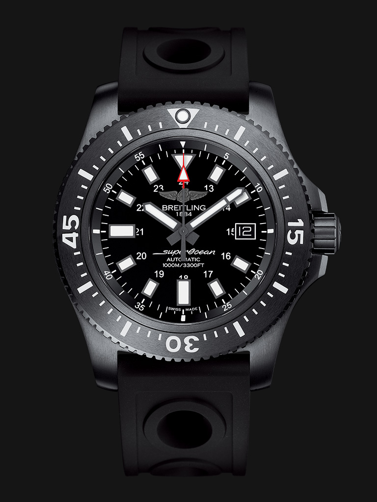 Submersible to a depth of 1,000 meters / 3,300 feet, the black dials Breitling Superocean 44 replica watches are perfect diving tools with technical appearance and powerful performance.