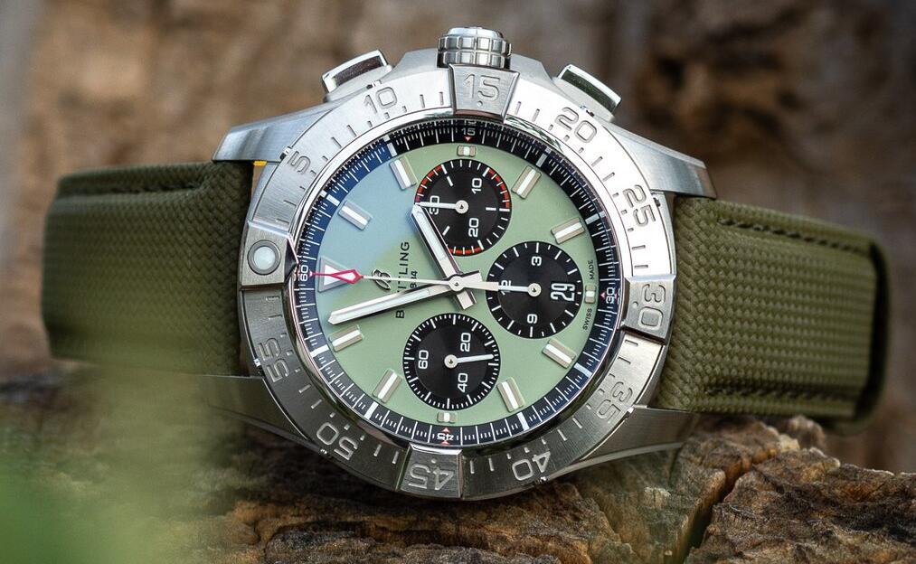 Interacting with the Breitling Avenger B01 Chronograph 44 in military surplus green