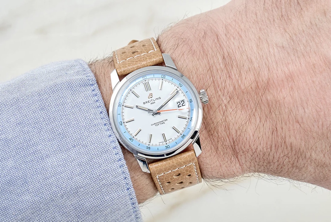 Mirroring that approach for a singular expressive style, the Top Time B31 collection features a new caliber, B31 —the first fully Breitling-designed and developed three-hand movement from the manufacture. Four years in the making, Breitling views its Swiss movements super clone Breitling Top Time B31 watches as its most ‘free-spirited’ collection, and while that is open to interpretation, what isn’t is the fact that its 38mm size makes it the three-hand timepiece the smallest in its men’s offering.