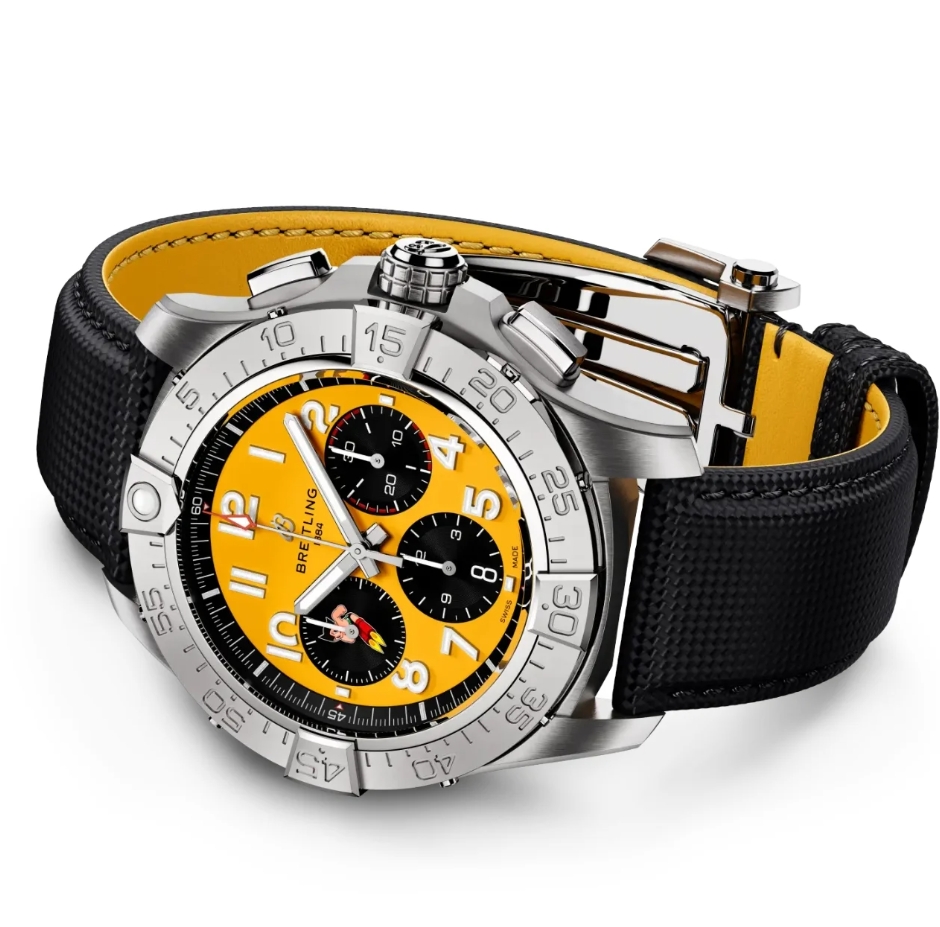 What’s refreshing about this collaboration is how it balances playfulness with craftsmanship. Pop culture watch collaborations can sometimes feel like cash grabs, but this feels considered. The yellow dial isn’t garish; it’s bold and confident. Astro Boy’s inclusion feels integrated rather than tacked on. Even the red-tipped chronograph seconds hand ties back to the character’s iconic color palette. Best Breitling copy watches have proven that heritage brands can embrace pop culture without losing their identity. The Avenger B01 Chronograph 44 Astro Boy Limited Edition manages to honor both the technical excellence that defines Swiss watchmaking and the imaginative spirit of Tezuka’s creation. They’re cheap fake Breitling watches that doesn’t take itself too seriously while still delivering serious horological goods.
