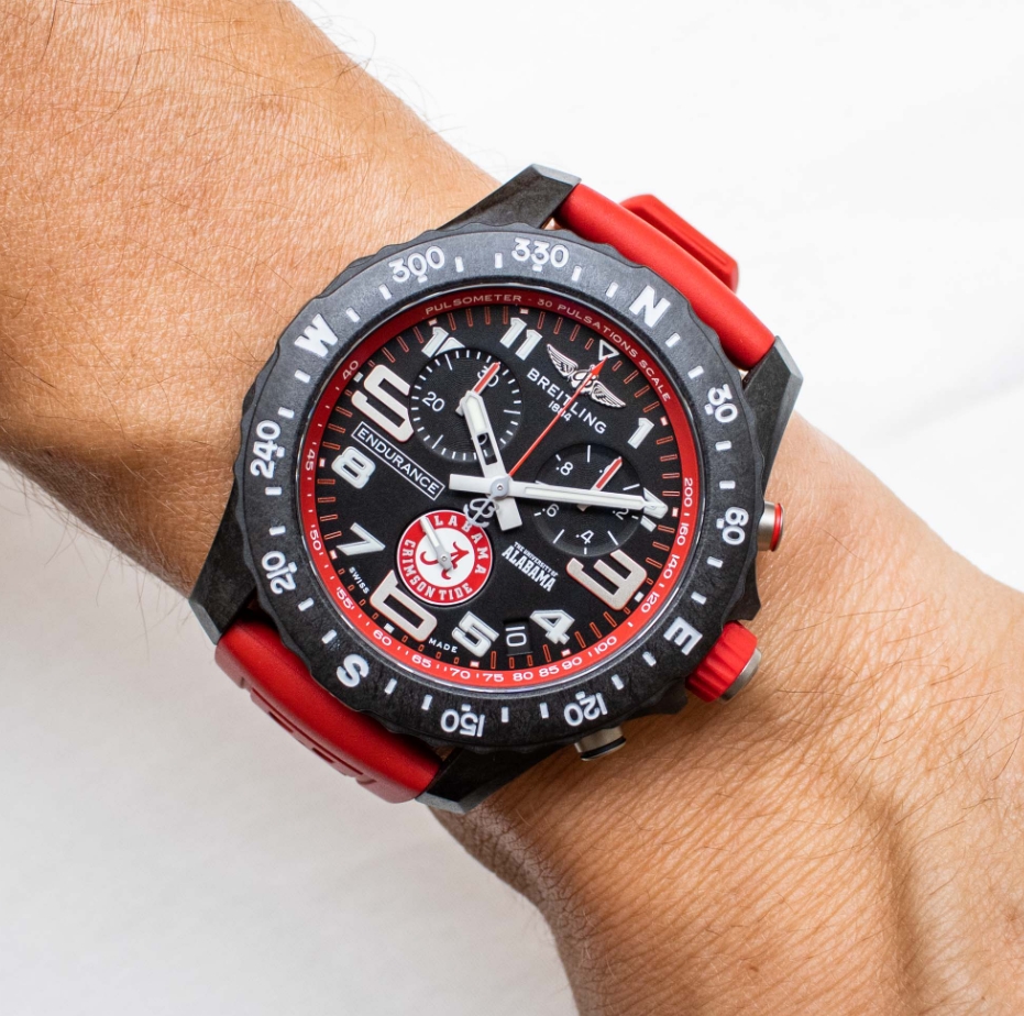 The widespread popularity of college sports has resulted in an enormous multifaceted industry, and while it’s easy to think of school-branded items largely within the context of just t-shirts, sweatpants, and hoodies, some people’s desire to show pride in their alma mater truly knows no limit. However, due to the fact that college sports aren’t accompanied by connotations of traditional luxury, university co-branding hasn’t really been something that’s historically been embraced by the higher-end segment of the watch industry. That said, replica Breitling watches for sale have always represented a fairly casual approach to luxury, and for its latest new release of 2023, the Swiss manufacturer has created school-branded editions of its entry-level quartz chronograph. Clearly aimed at recent graduates and college sports super-fans, the new Breitling Endurance Pro University Edition series makes its debut appearance as a quartet of United States-exclusive models, with each one dedicated to a different famous university that is known for having extreme levels of school spirit.